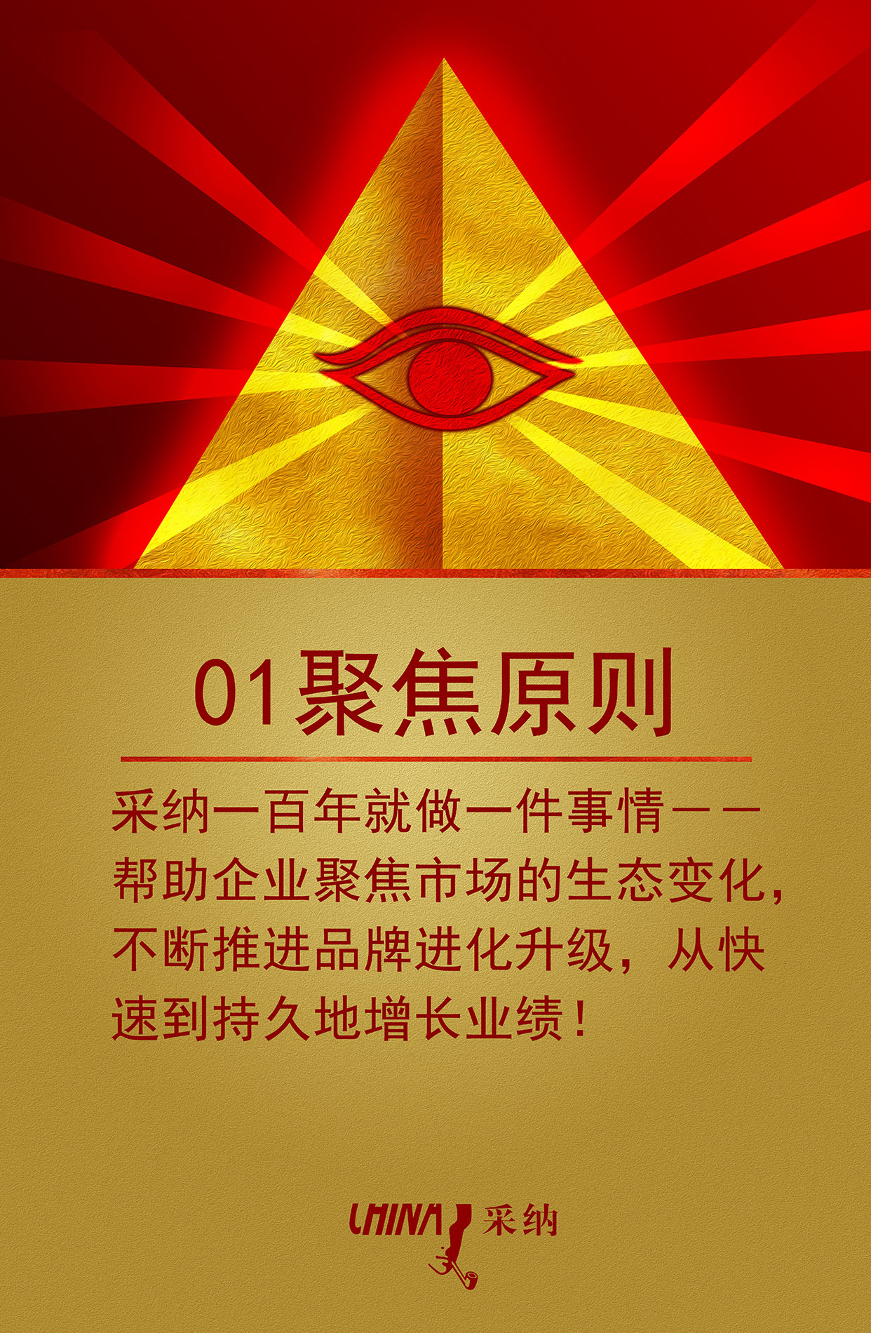 01聚焦原则——采纳一百年就做一件事情,帮助企业聚焦市场的生态变化,不断推进品牌进化升级,从快速到持久地增长业绩,打造品牌也是如此!