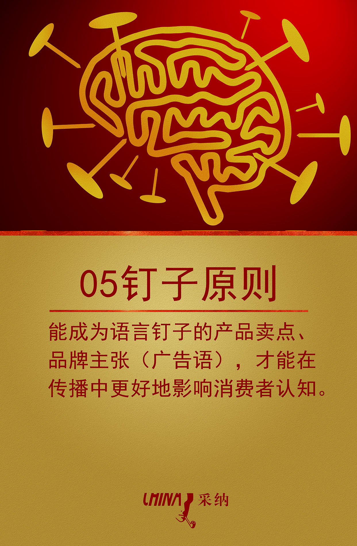 05钉子原则——能成为语言钉子的产品卖点、品牌主张(广告语),才能在传播中更好地影响消费者认知。