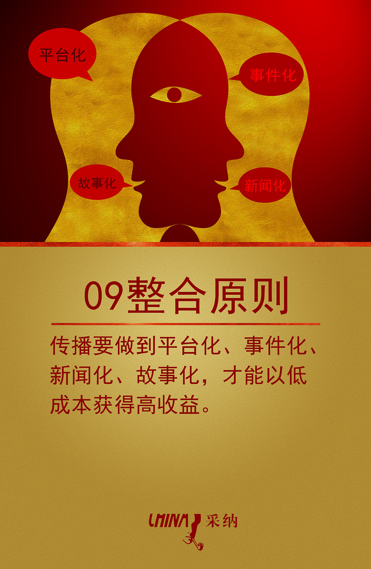 09整合原则——传播要做到平台化、事件化、新闻化、故事化,才能以低成本获取高效益。