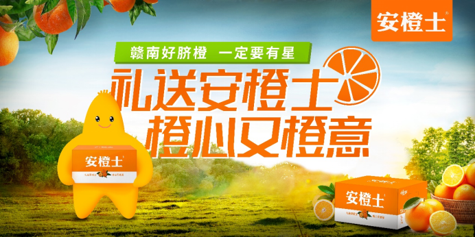 在同类产品还在强调酸甜度等产品物理层面价值时,采纳率先帮助安橙士打破常规,按照“星级脐橙”的品牌价值塑造超级IP形象,将这一形象用在包装、海报、灯箱等等所有消费者能触达到终端、物料,让这一形象无处不在,强势且迅速的占领广大消费者心智。