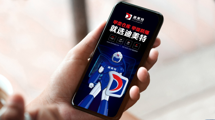 升级后的品牌LOGO,在警察蓝的方块中包裹着一抹红,寓意着迪美特把防爆危险安全地锁住,代表着安全感的蓝色运用,与安全行业更为契合。