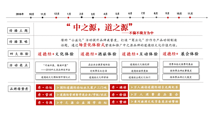 1、 采纳为中之源冠上一张“老子道德经文化酒”的新名片,将中之源打造成为河南代表性豫酒。
